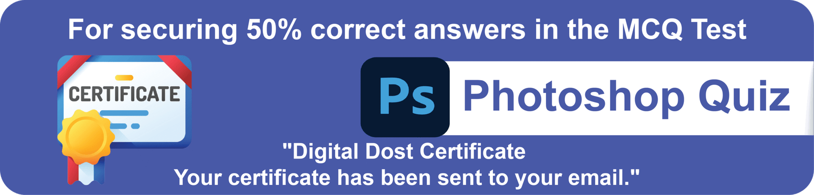 Photoshop QuizPhotoshop Quiz (“50 Questions • 50 Marks One Liner MCQ Test” )September 13, 2025Com 0 /50 Photoshop Quiz Math quiz helps us to increase our knowledge 1 / 50 Photoshop में "Brush Tool" का शॉर्टकट कुंजी है: B C P T 2 / 50 Photoshop में "Ctrl + Shift + U" का शॉर्टकट किसके लिए है? Desaturate (रंग हटाने के लिए) Undo करने के लिए Save करने के लिए लेयर कॉपी करने के लिए 3 / 50 Photoshop में "Ctrl + P" शॉर्टकट किसके लिए है? प्रिंट करने के लिए पेस्ट करने के लिए Pen Tool के लिए Preview देखने के लिए 4 / 50 Photoshop में "Gradient Tool" का शॉर्टकट है: G P T L 5 / 50 Photoshop में "Magic Wand Tool" किसके लिए उपयोग होता है? रंग बदलने के लिए समान रंग वाले क्षेत्र का चयन करने के लिए फोटो को सेव करने के लिए टेक्स्ट जोड़ने के लिए 6 / 50 Photoshop में "Opacity" का प्रयोग किसके लिए होता है? लेयर की पारदर्शिता (Transparency) नियंत्रित करने के लिए इमेज काटने के लिए फॉन्ट बदलने के लिए ब्रश चुनने के लिए 7 / 50 Photoshop में फाइल सेव करने का डिफॉल्ट फॉर्मेट क्या है? .jpg .psd .png .gif 8 / 50 Photoshop में "Ctrl + Shift + N" का शॉर्टकट किसके लिए है? नई लेयर बनाने के लिए चयन करने के लिए Undo करने के लिए सेव करने के लिए 9 / 50 Photoshop में "Ctrl + Z" शॉर्टकट का प्रयोग किसके लिए होता है? सेव करने के लिए Undo करने के लिए कॉपी करने के लिए पेस्ट करने के लिए 10 / 50 Photoshop में "Pen Tool" का मुख्य उपयोग है: Path और Selection बनाने के लिए टेक्स्ट लिखने के लिए ब्रश लगाने के लिए फोटो सेव करने के लिए 11 / 50 Photoshop में "F7" दबाने पर क्या खुलता है? Brush Panel Layer Panel History Panel Gradient Panel 12 / 50 Photoshop में "Dodge Tool" किसके लिए प्रयोग होता है? फोटो के हिस्से को उज्ज्वल (Lighten) करने के लिए फोटो के हिस्से को गहरा करने के लिए लेयर हटाने के लिए रंग बदलने के लिए 13 / 50 Photoshop में टेक्स्ट लिखने के लिए कौन सा टूल प्रयोग होता है? Type Tool Pen Tool Move Tool Shape Tool 14 / 50 Photoshop में "Ctrl + + (Plus)" दबाने का कार्य है: Zoom In करने के लिए Zoom Out करने के लिए Undo करने के लिए Layer Duplicate करने के लिए 15 / 50 Photoshop में "F" दबाने पर क्या होता है? Screen Mode बदलता है Filter Panel खुलता है File Save होती है Text Tool एक्टिव होता है 16 / 50 Photoshop में "Ctrl + Shift + I" का उपयोग होता है: चयन उलटने (Inverse) के लिए Undo करने के लिए Save करने के लिए Brush चुनने के लिए 17 / 50 Photoshop में "History Panel" किसके लिए उपयोग किया जाता है? फाइल नाम बदलने के लिए पिछला काम देखने और Undo करने के लिए नई लेयर बनाने के लिए इफेक्ट लगाने के लिए 18 / 50 Photoshop में "Lasso Tool" का उपयोग किसके लिए होता है? टेक्स्ट लिखने के लिए चयन (Selection) करने के लिए रंग बदलने के लिए ब्रश लगाने के लिए 19 / 50 Photoshop में "Eyedropper Tool" का कार्य है: फोटो घुमाना रंग चुनना टेक्स्ट हटाना फोटो सेव करना 20 / 50 Photoshop में "Ctrl + Alt + Shift + S" का प्रयोग होता है: Save for Web (वेब के लिए सेव करने के लिए) Undo करने के लिए फोटो प्रिंट करने के लिए लेयर बनाने के लिए 21 / 50 Photoshop में "Crop Tool" का उपयोग होता है: फोटो काटने के लिए फोटो सेव करने के लिए लेयर बनाने के लिए रंग बदलने के लिए 22 / 50 Photoshop में "Ctrl + Alt + Z" का उपयोग किसके लिए होता है? Multiple Undo (कई बार Undo करने के लिए) सेव करने के लिए फोटो काटने के लिए नई लेयर बनाने के लिए 23 / 50 Photoshop में "Filter Gallery" क