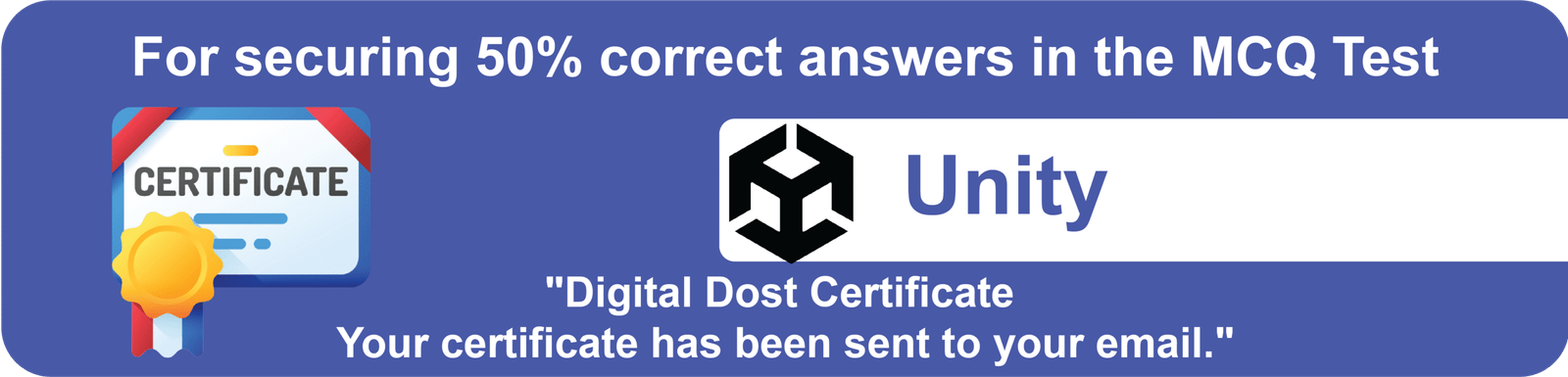 UnityUnity (“50 Questions • 50 Marks One Liner MCQ Test”)September 15, 2025Com 0 1 Unity Quiz 1 / 50 Unity में "Profiler" का उपयोग किसके लिए किया जाता है? Performance Analyze Lighting Control Animation Control Audio Playback 2 / 50 Unity में "AssetBundle" किसके लिए होता है? Physics Control Scene Save External Assets Load UI Control 3 / 50 Unity में "ScriptableObject" किसके लिए उपयोग होता है? Data Storage Physics Control Lighting Animation 4 / 50 Unity में "Application.targetFrameRate" किसके लिए है? Audio Output Game FPS Limit Physics UI 5 / 50 Unity में Physics Material का उपयोग किसके लिए होता है? Bounciness और Friction Control Lighting Control Audio Effect Animation 6 / 50 Unity में Rigidbody2D किसके लिए है? 2D Physics 3D Physics Lighting Audio 7 / 50 Unity में Lerp Function किसके लिए है? Animation Transition Smooth Value Interpolation Audio Mix Physics 8 / 50 Unity में Time.deltaTime का उपयोग क्यों किया जाता है? Frame Independent Movement Lighting Control Animation Playback Audio Sync 9 / 50 Unity में "Build and Run" का कार्य क्या है? Game Export और Run केवल Export केवल Run Scene Save 10 / 50 Unity में OnTriggerEnter() कब उपयोग होता है? Trigger Collider Interact होने पर Audio Play होने पर Scene Save होने पर Rigidbody Disable होने पर 11 / 50 Unity में OnCollisionEnter() किसके लिए है? Audio Control Collision Detect करने के लिए Animation Start Lighting 12 / 50 Unity में LateUpdate() किसके लिए है? Physics Control Camera Follow Smoothly Animation Play Scene Save 13 / 50 Unity में "DontDestroyOnLoad()" का उपयोग कब होता है? Object को Scene Change पर Destroy होने से बचाने के लिए Rigidbody Disable करने के लिए Collider हटाने के लिए Lighting Fix करने के लिए 14 / 50 Unity में Layers किसके लिए होती हैं? Physics और Rendering Control Lighting Control Animation Transition Audio 15 / 50 Unity में Tag का उपयोग किसके लिए किया जाता है? Object पहचानने के लिए Material Apply करने के लिए Animation Control करने के लिए Audio Playback करने के लिए 16 / 50 Unity में FixedUpdate() किसके लिए है? Physics Calculations Audio Playback UI Interaction Lighting 17 / 50 Unity में "Update()" Method कब Call होता है? Game Start पर हर Frame Script Disable होने पर Audio Play होने पर 18 / 50 Unity में "Awake()" Method कब Call होता है? Script Enable होने पर हर Frame Object Destroy होने पर Physics Trigger होने पर 19 / 50 Unity में EventSystem किससे संबंधित है? Physics UI Interaction Lighting Audio 20 / 50 Unity में PlayerPrefs का उपयोग किसके लिए होता है? Animation Control Game Data Store Physics Control Scene Lighting 21 / 50 Unity में Coroutines किस लिए उपयोग किए जाते हैं? Async Operations Physics Control Audio Play Lighting 22 / 50 Unity में Application Quit करने का Command क्या है? Exit() Application.Quit() Game.Stop() Close() 23 / 50 Unity में Audio Listener क्या करता है? Audio Play करता है Camera/Player पर Audio सुनने का कार्य Audio File Save करता है Audio Convert करता है 24 / 50 Unity में UI Elements कहाँ से Create किए जाते हैं? Edit Assets → Import GameObject → UI Tools 25 / 50 Unity में Script किस भाषा में लिखे जाते हैं? Python JavaScript और C# Ruby HTML 26 / 50 Unity में FPS का मतलब क्या है? Frames Per Second File Processing Speed First Player Setup Frame Process Setting 27 / 50 Unity में कौन सा Component Gravity से प्रभावित होता है? Audio Source Rigidbody Animator Collider 28 / 50 Unity में "Collider" का उपयोग क्यों किया जाता है? Mesh बनाना Audio Control Object Interaction Detect करना Texture Apply करना 29 / 50 Unity में Particle System का उपयोग किस लिए होता है? Lighting Effects Special Effects जैसे Smoke, Fire Audio Output Physics 30 / 50 Unity में Raycasting किसके लिए होता है? Animation Audio Control Light Control Object Detection 31 / 50 Unity में Gizmos किसके लिए होते हैं? Editor View में Visualization Game को Build करना Scene Save करना Animation Add करना 32 / 50 Unity में "Transform" Component क्या नियंत्रित करता है? Audio Properties Position, Rotation, Scale Animation Transition Rigidbody 33 / 50 Unity में NavMesh किसके लिए उपयोग होता है? AI Navigation Audio Editing Physics Control Scene Save 34 / 50 Unity में Lighting Baking किसके लिए होता है? Dynamic Shadows Precomputed Lighting Rigidbody Control Audio Mix 35 / 50 Unity का Default Script Editor कौन सा है? Visual Studio Notepad MonoWri